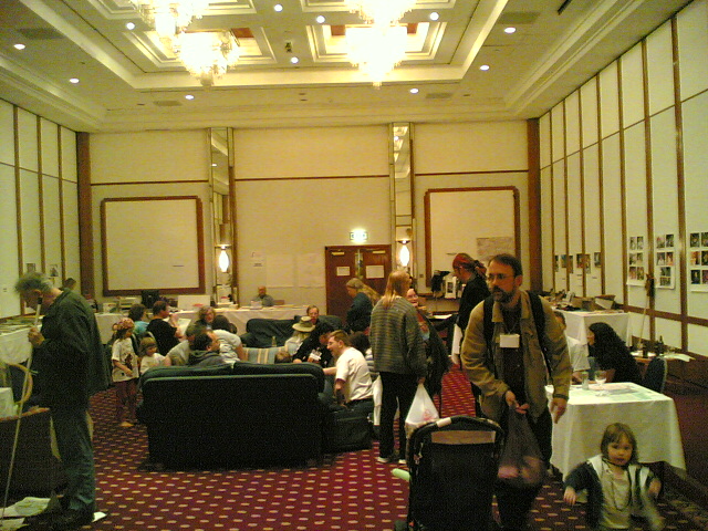 abrinsky on the BSFA stall in the dealer's room, and so on--but the sheer number of people wandering around the concourse was intimidating. Of course, after the fact I love it, love reading other people's con stories and seeing how they thread through and around my experience, seeing whether they intersect even a little bit ... but that afternoon I was daunted.